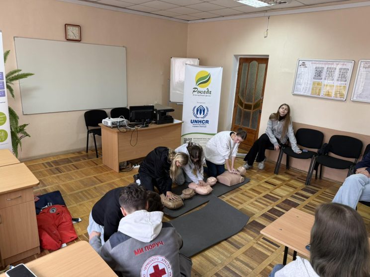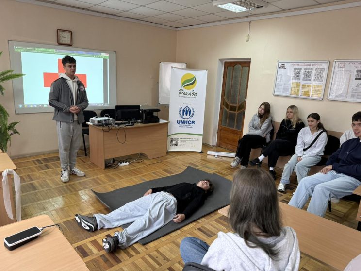 Участь ліцеїстів у занятті з надання першої домедичної допомоги спільно з Івано-Франківською обласною організацією Товариство Червоного Хреста України та БФ Рокада.